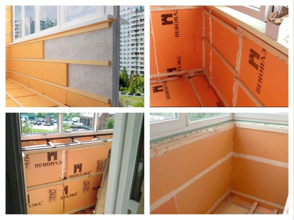 Если для утепления балкона применялась тонкая теплоизоляция (до 30 мм), а его стены и ограждение достаточно ровные, обрешетку можно сформировать из реек сечением 20х20 мм, которые прикручиваются к стене и парапету. В местах, где имеются неровности, под рейки необходимо подкладывать деревянные прокладки.