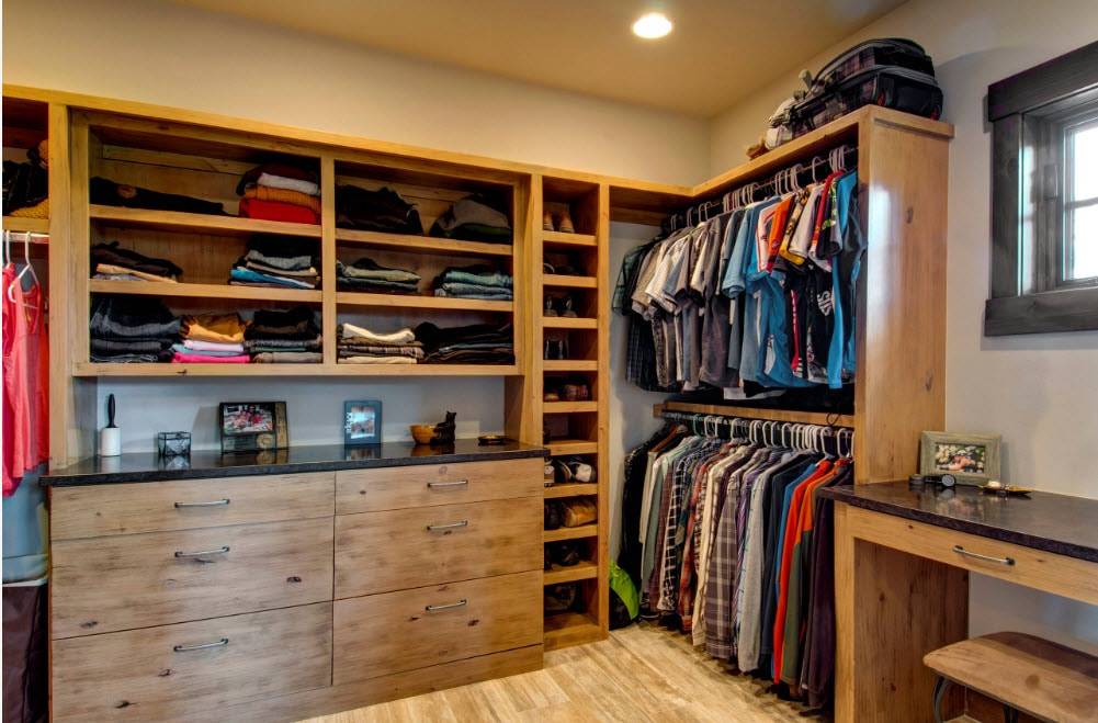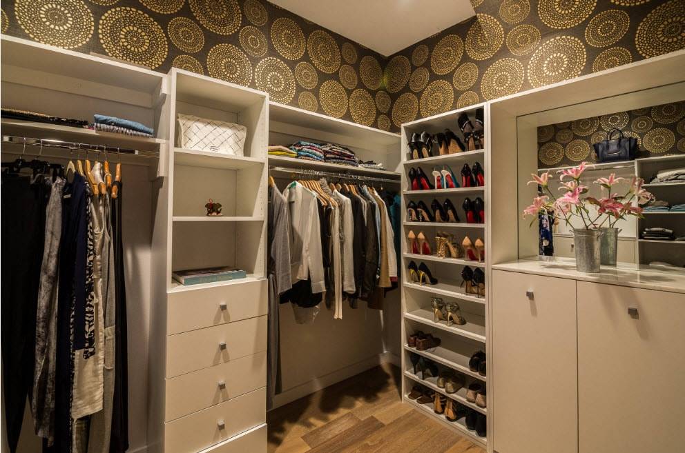 Кстати, именно в гардеробной комнате шкаф не обязательно должен иметь фасады. Очень красиво смотрятся открытые варианты. По мнению дизайнеров, именно такой шкаф стоит выбирать для гардеробной.
