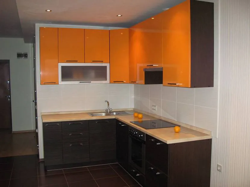 Оранжевый верх гарнитураИсточник dizainkyhni.com