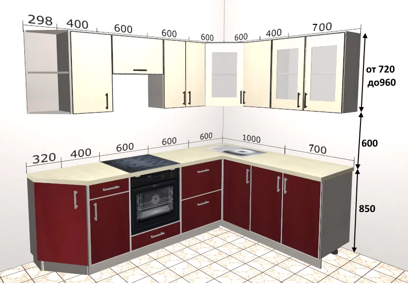 Размеры угловых кухонных шкафов