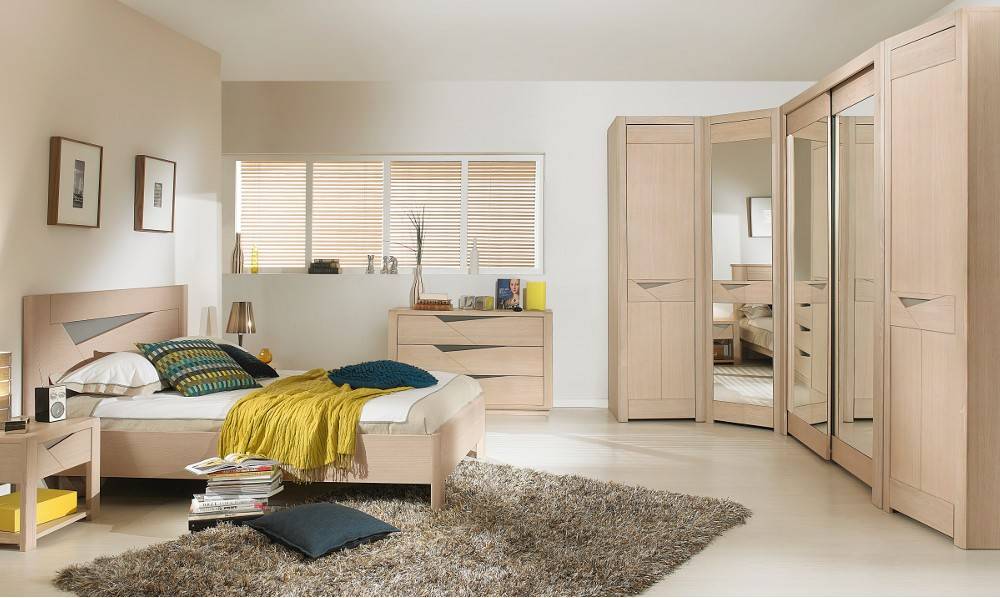В первую очередь стоит обратить внимание на цвет шкафа, так как он должен соответствовать стилистике спальни. Для маленьких комнат лучше подобрать конструкцию, которая будет совпадать с цветом стен