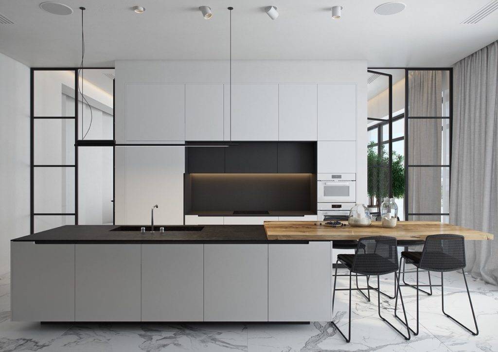 Черно-белая кухня с отдельной столовойИсточник dekordoma.net