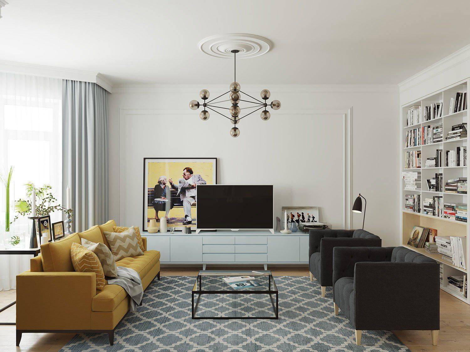 Используйте площадь, не бойтесь задействовать центр комнаты. Оптимальное расстояние между мебелью от 30 см до 1 м. Избегайте и лишних элементов, например, стульев вдоль стен или возле двери.