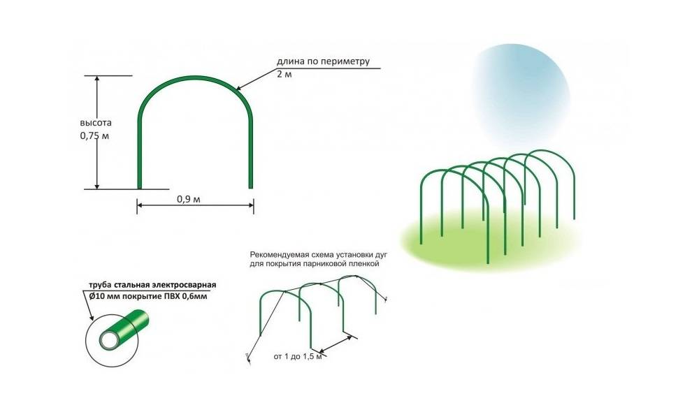 Перед началом работы желательно нарисовать схему будущего парника и отметить на грядке расположение арок.