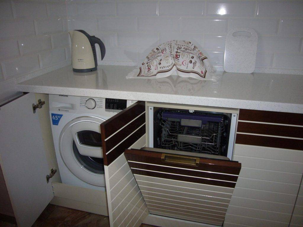 - во-вторых, благодаря свободному пространству на кухне, которое будет отведено под «стиралку», можно высвободить пространство в малогабаритной ванной;