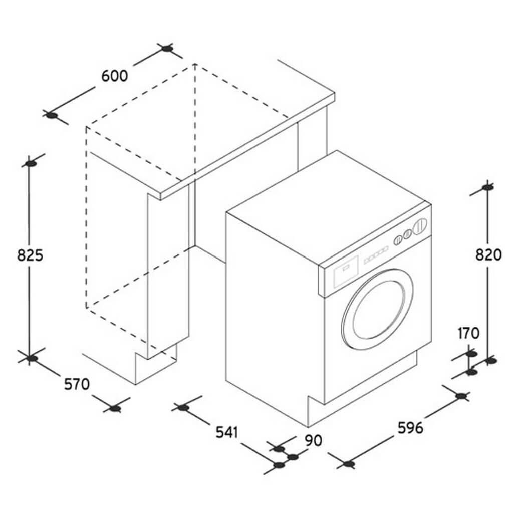 - Учитывают, что глубина встраивания всегда на 5-6 см больше глубины машинки. Это требуется для подключения коммуникаций.