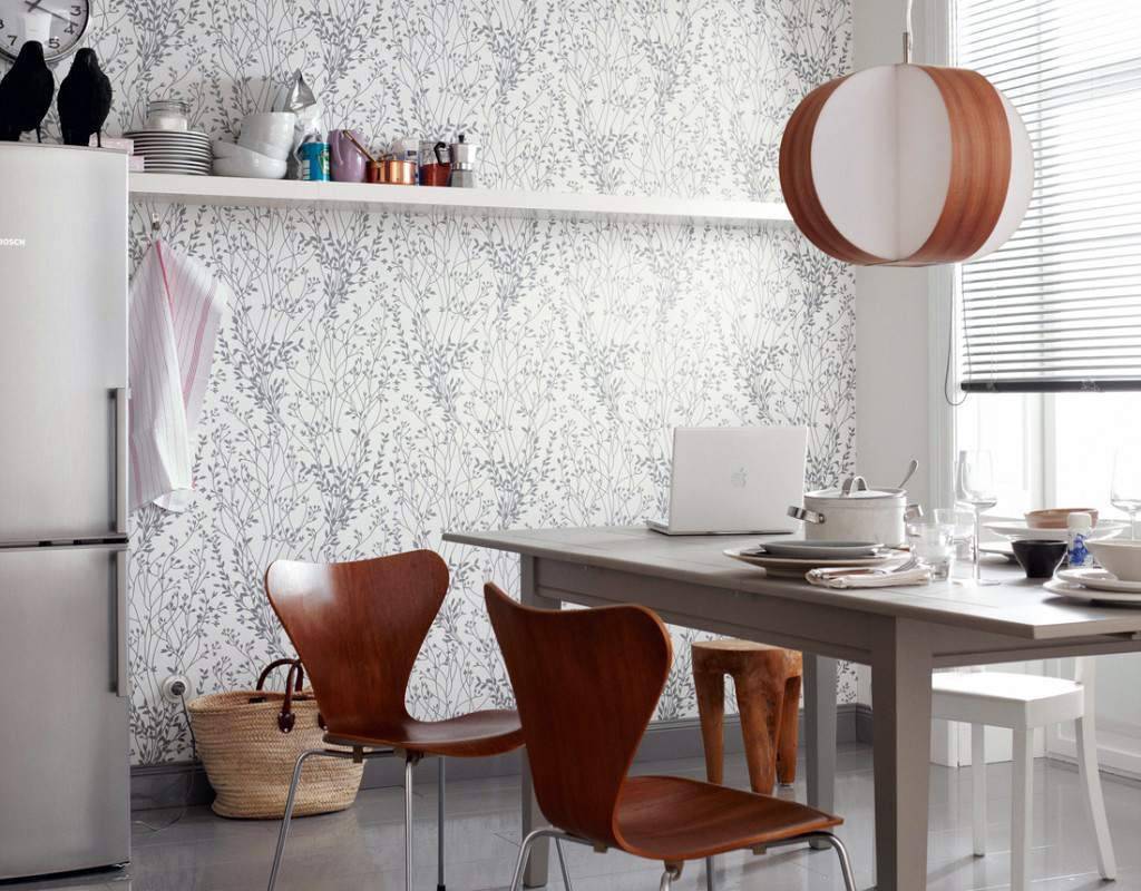 В кухне и столовой проводить чистку обоев нужно постоянно. Способность не воспринимать запахи и не впитывать их. Пропахшие едой обои не добавляют уюта. Стойкость к выгоранию. Нам привычнее находится на кухне, освещенной натуральным светом, поэтому в стандартных планировках квартир в этом помещении делают большие окна. Следовательно, обои должны активно сопротивляться выгоранию и не терять свой цвет. Мы прямо заинтересованы в максимально долгом сохранении их декоративных качеств.