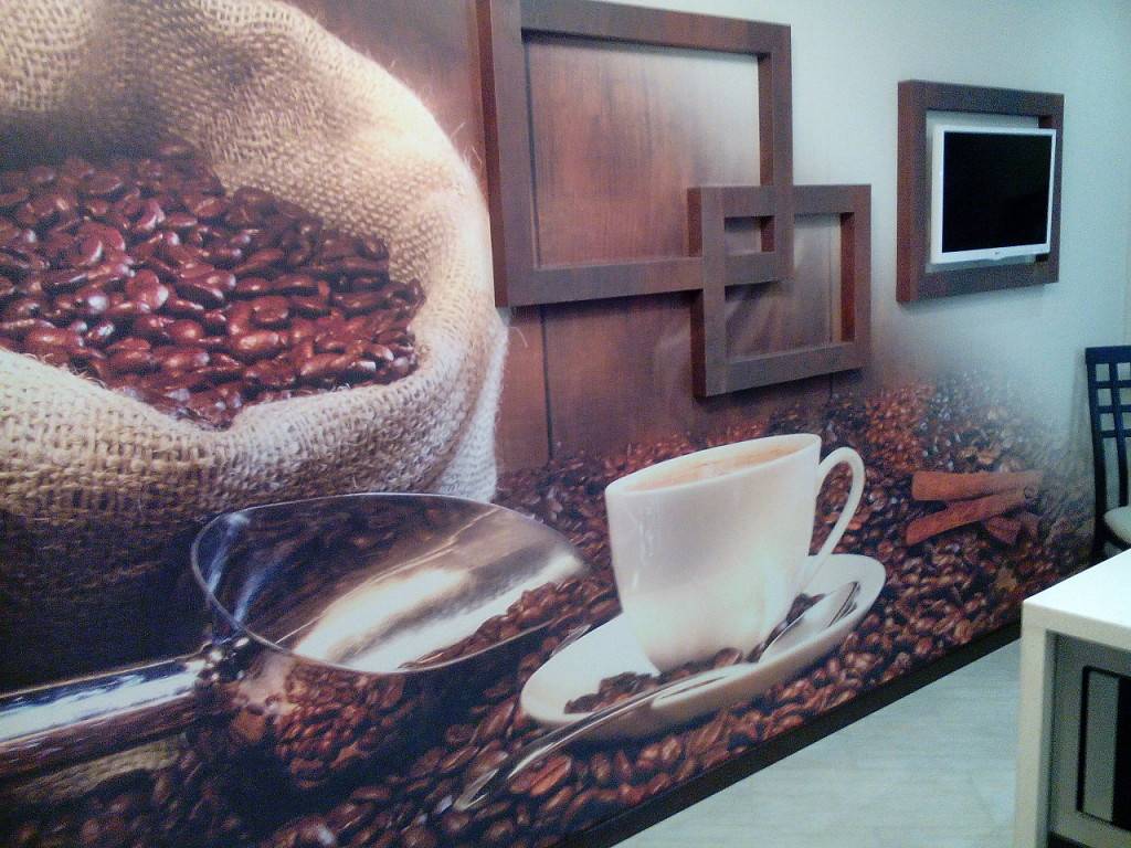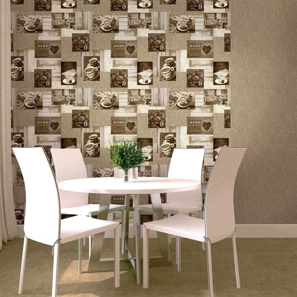 Хорошо выглядят обои с рисунком кофейных зерен или силуэтами чашек для кофе. Мы считаем, лучше сочетать их с другими покрытиями бежевых и светло-коричневых оттенков. Так вы создадите гармоничную обстановку. Такое заключение — замечательно для прованса, деревенского стиля или кафе.