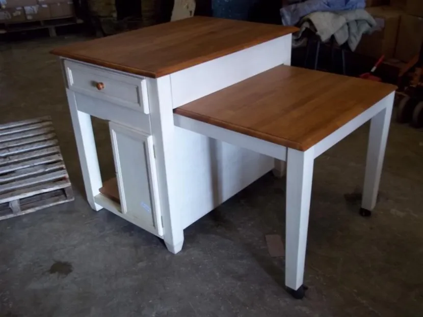 Во-первых, его можно использовать в качестве места для быстрого перекуса. Иногда он выступает в роли кофейно-чайного столика. В этом случае большой обеденный стол для полноценной трапезы можно поставить в гостиной. А выдвижная столешница вполне позволяет позавтракать на кухне или выпить чашечку кофе без траты времени и сил на сервировку.
