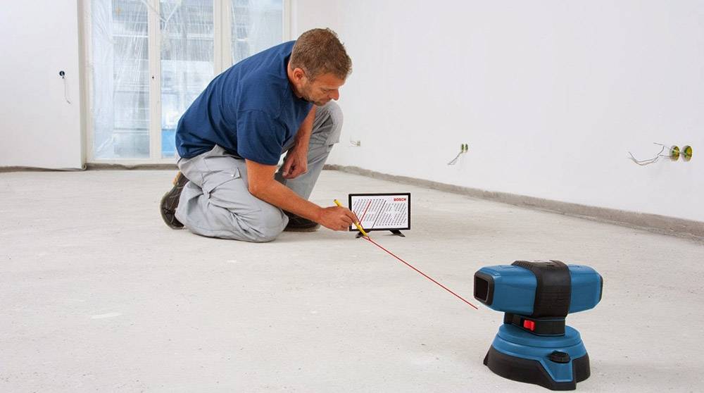 Наиболее точно выполнить замер уровня пола способен лазерный уровень. Если при измерении уровня между полом и ориентиром данные одинаковые, то полы безупречно ровные.