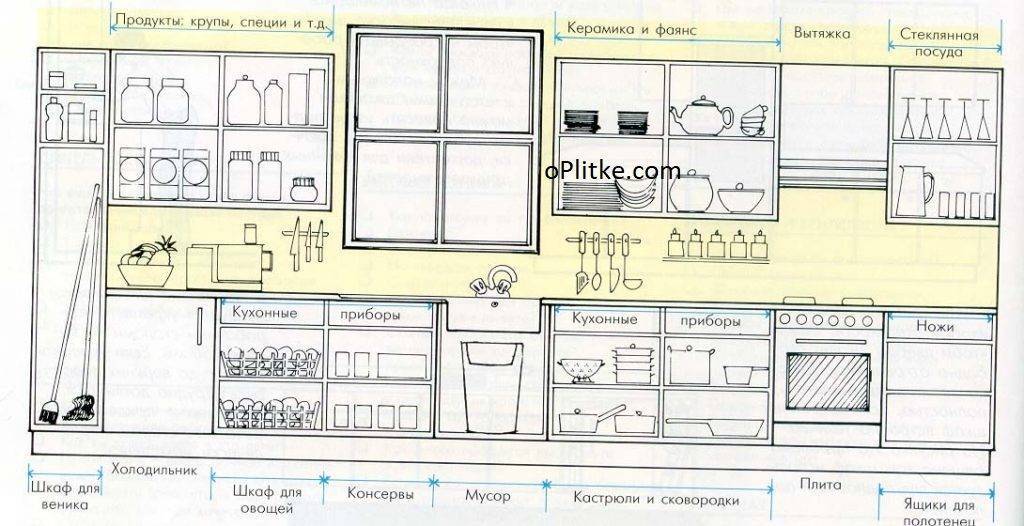 Стандартные параметры для удобного пользования кухней можно посмотреть ниже на фото.