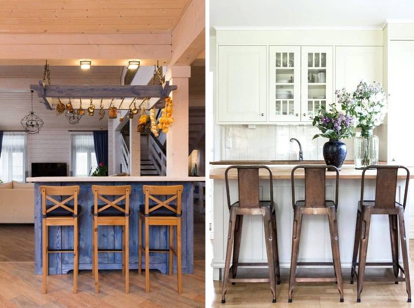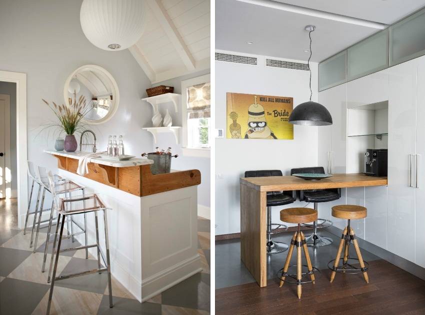Основные варианты устройства барной стойки на кухне следующие:
