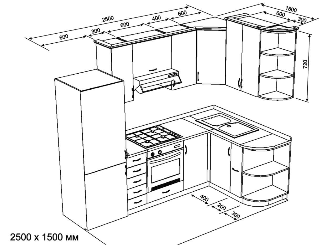Обычно все размеры кухонной мебели стандартизированы. Чтобы мебель вписывалась в предназначенное для нее пространство, следует измерить параметры не только самого гарнитура, но и помещения, в котором он будет находиться.