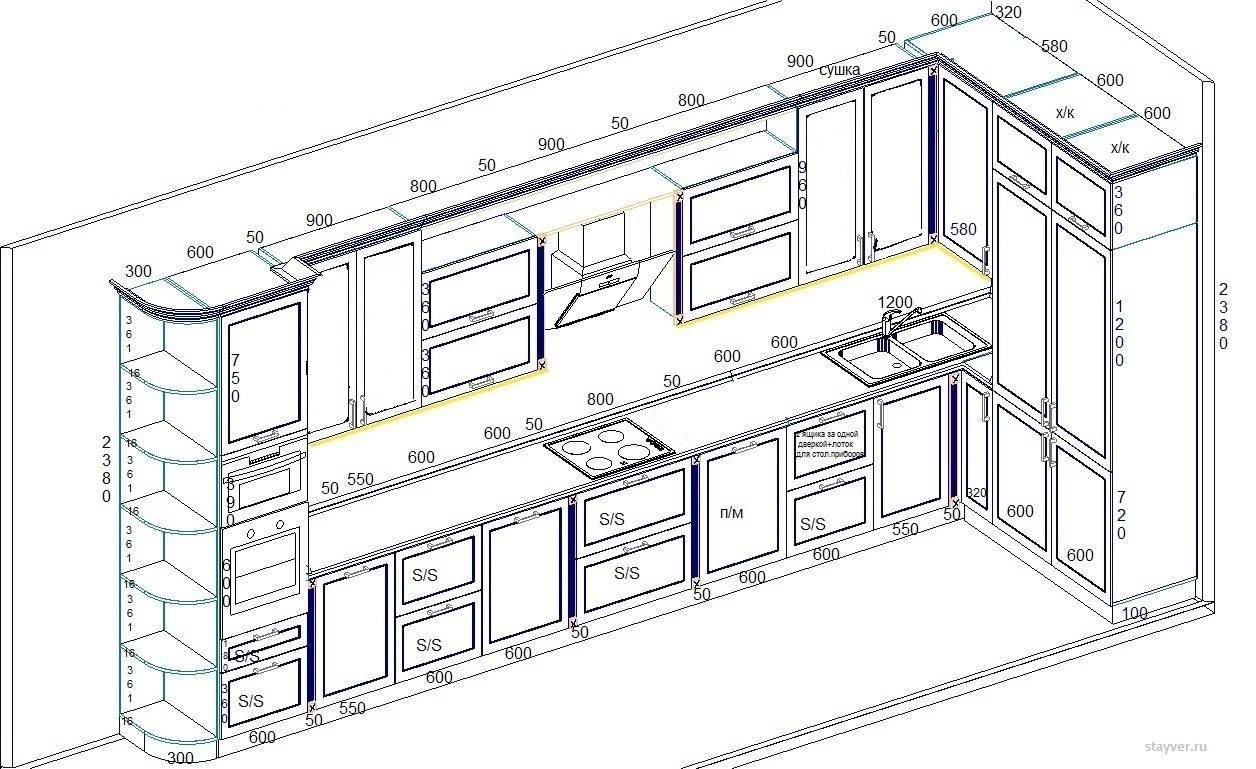Стандартные размеры кухонных шкафов: нижних и верхних