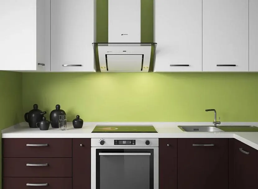 - Цвет вытяжки безопаснее всего выбирать в тон фасадов, стены или фартука.