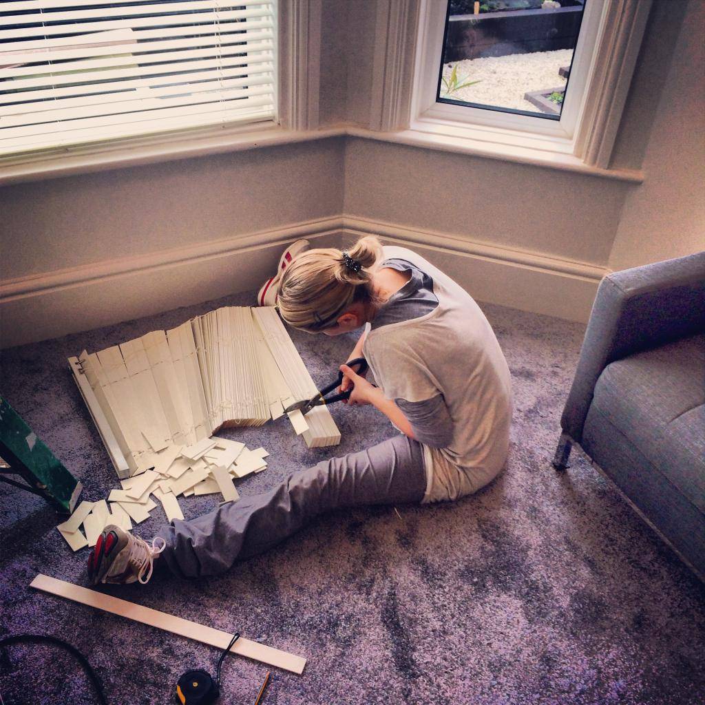 Как видно, убрать лишние планки проще всего, а вот как укоротить горизонтальные жалюзи по ширине? Для этих работ приготовьте карандаш, измерительный инструмент, наждачную бумагу, ножовку или электрический лобзик.