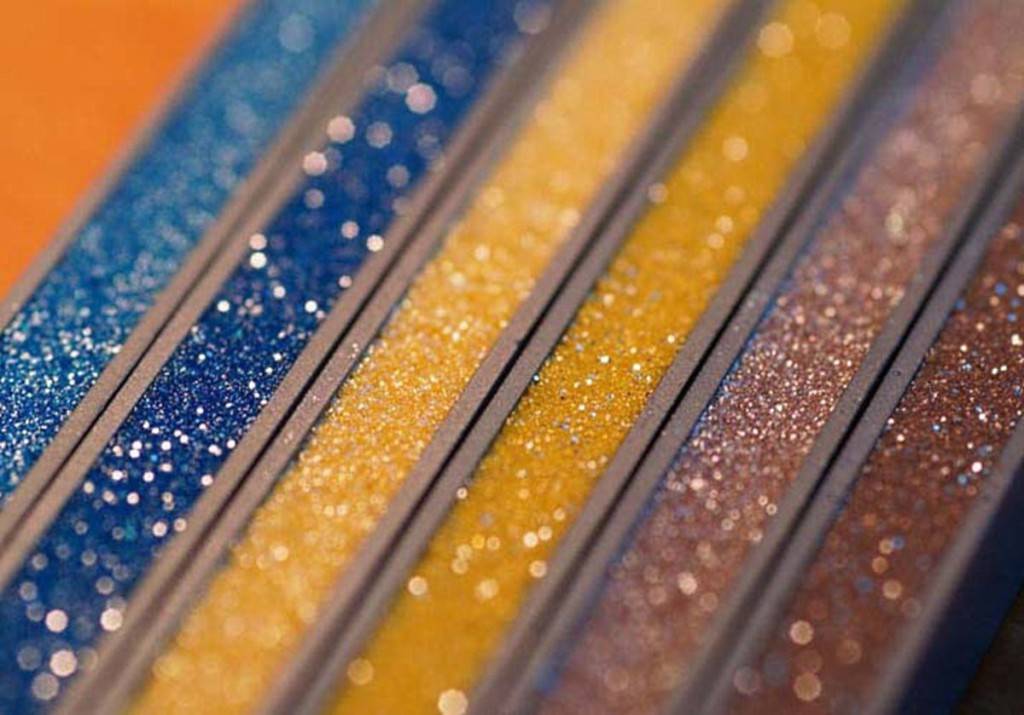 Кроме металлических примесей для украшения, существуют смеси с перламутровыми, золотистыми, серебряными элементами. Необычно смотрится флуоресцентная фуга – в темноте даёт слабое зелёное свечение.