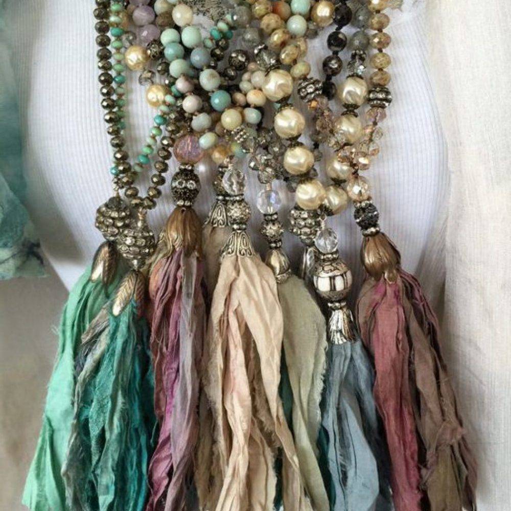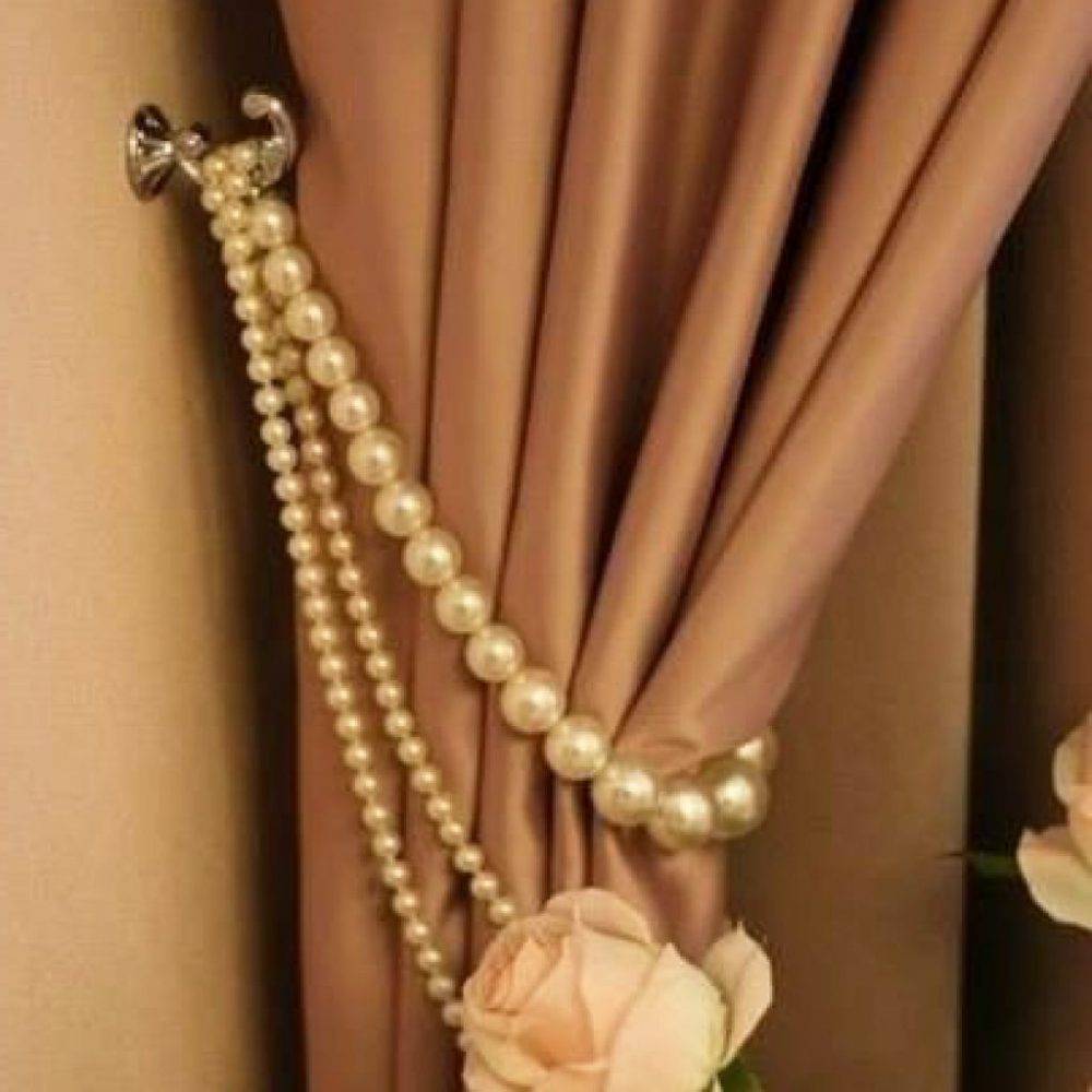 Нитью из блестящих и матовых бусин, можно оформить кисточки держателя занавесок.