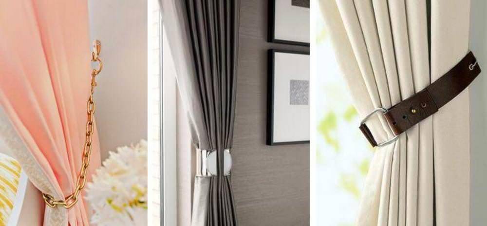 Прихваты для штор своими руками можно сделать из различных материалов. Зажимы изготавливают даже из магнитов, веревок, других изделий. При выборе держателя учитывают тип занавесок, интерьер комнаты.