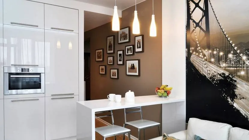 3. Барная стойка. Для небольшой семьи из 2-х человек – это полноценная зона. При наличии столовой барная стойка будет местом, где можно быстро перекусить, не накрывая большой стол.