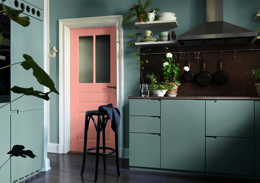 Являются наиболее приемлемым и оптимальным вариантом для создания спокойного и уютного интерьера. Нежный мятный колер или оттенок зеленого чая привнесут в атмосферу кухни умиротворенности.