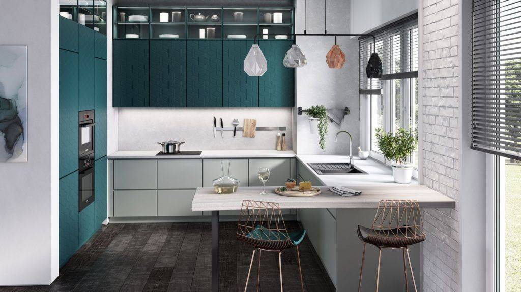 Этот цвет – истинный фаворит. Глубокий, насыщенный – он выглядит изысканно и благородно. Изумрудная кухня способна вписаться даже в классический стиль, но при этом не менее эффектна будет и в реализации современных стилей.