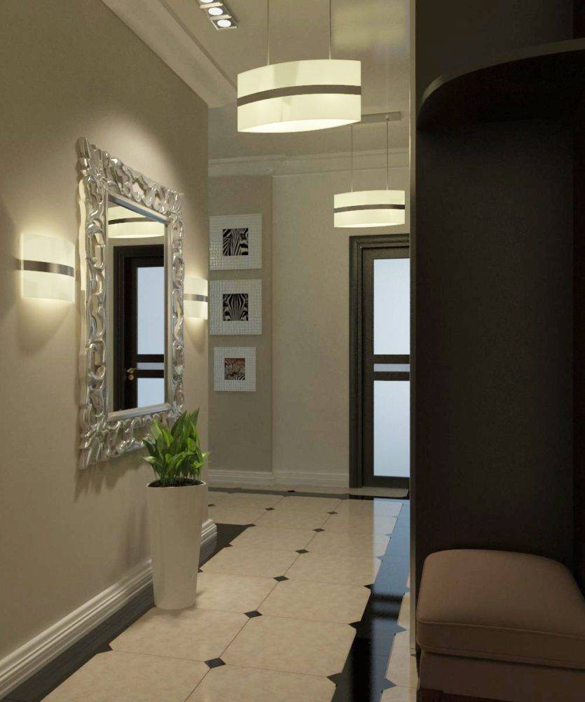 - В длинном коридоре можно разместить несколько зеркал. Главное, чтобы они не были направлены друг на друга, для этого их вешают в шахматном порядке. Считается, что положительная энергия, попавшая в такой коридор, успешно заполняет пространство квартиры.