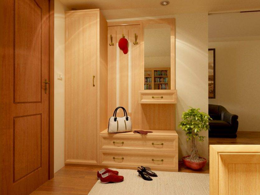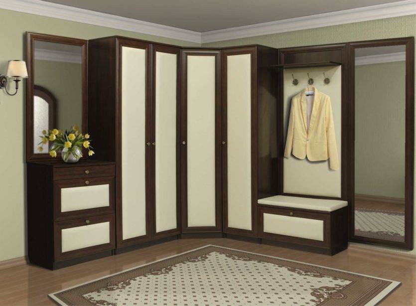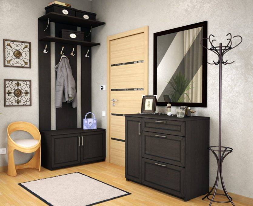 Также хорошим решением для небольших коридоров будет полноценный сформированный набор мебели в прихожую, в который входит и шкаф с зеркалом, и прочие разнообразные разделы.