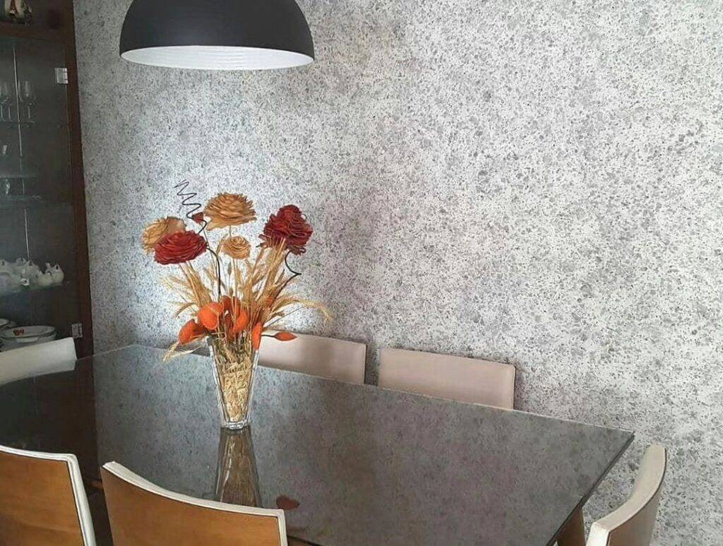 Используя такую жидкую смесь для нанесения на поверхность стены, можно отметить, что обои визуально будут напоминать обычные рулонные.