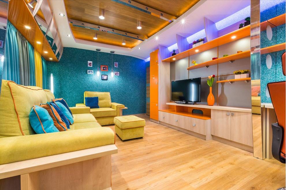 Пожалуй, главной комнатой квартиры является гостиная. Именно она задает стилистическое направление в оформлении всех остальных помещений. Поэтому в ее дизайне хочется видеть что-то особенное и оригинальное. Такой изюминкой могут стать жидкие обои. Для декора лучше всего выбирать обои с неровной или неоднородной текстурой. Чтобы усилить эффект, в смесь добавляют гранулы и флок. Они придают вид штукатурного покрытия.